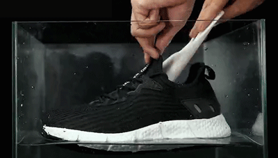 防水力更是强到可以媲美雨靴!下雨天可以安心穿。整只鞋泡进水里测试,居然一点儿水都没漏进去。