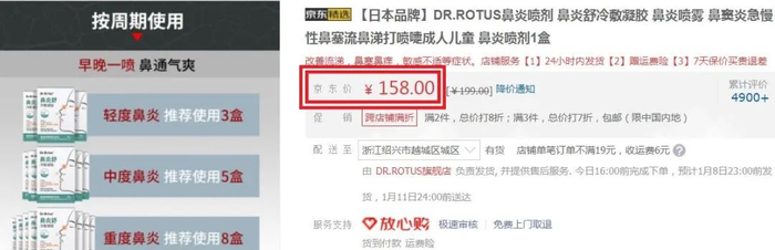 日本DR.ROTUS鼻炎舒冷敷凝胶,某东官方旗舰店售价158元/件。