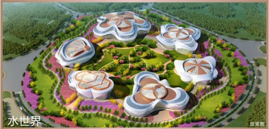 项目汇集全球知名设计团队,倾力打造约34万㎡水世界,全球规模最大、档次最高的全室内、全天候、全季节温泉水乐园。规划六大主题场馆,包括亲子馆、竞技馆、趣味馆、儿童馆、极限馆、挑战馆,涵盖120个水上游乐项目,将带来梦幻奇妙、科幻刺激的缤纷欢乐。