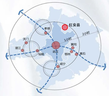 区域内将打造便捷交通及完善的产业链加速推动武汉城市圈一体化发展。在交通方面,“1小时交通圈”骨架已基本形成,武汉至咸宁、黄石、黄冈、孝感四城市的城际铁路已开通运行。总里程约560公里的武汉城市圈环线高速公路串起了武汉周边8个城市,自开通后,相邻两市之间最快车程由之前的1小时左右缩短至40分钟以内,使城市至今串联更加紧密。快速路网的建设、重要桥梁的连接,打破了城市出口通道“瓶颈”的制约,满足圈了内城市的快速往来,提升了城市圈的集聚力与辐射力,促进了城市圈内各城市融合交流。在产业发展方面,武汉城市圈将以武汉为核心,强化武汉主中心作用,进一步加快区域一体化,提升武汉城市圈功能,促进区域发展。项目所在的红安县正位于武汉“一小时交通圈”内,凭借完善的交通规划及产业布局,区域价值凸显。