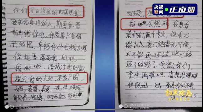 一个被害人生前拍下视频:“我真的受不了,爸妈,如果还有来生的话,我做牛做马再报答你们。”