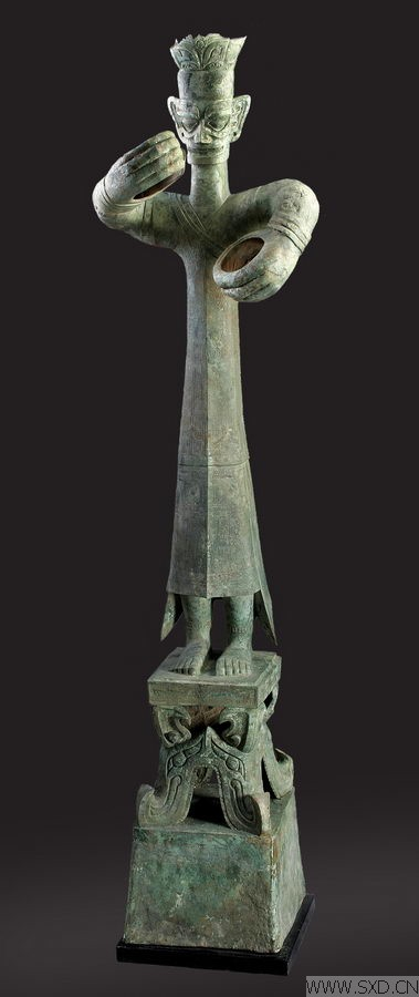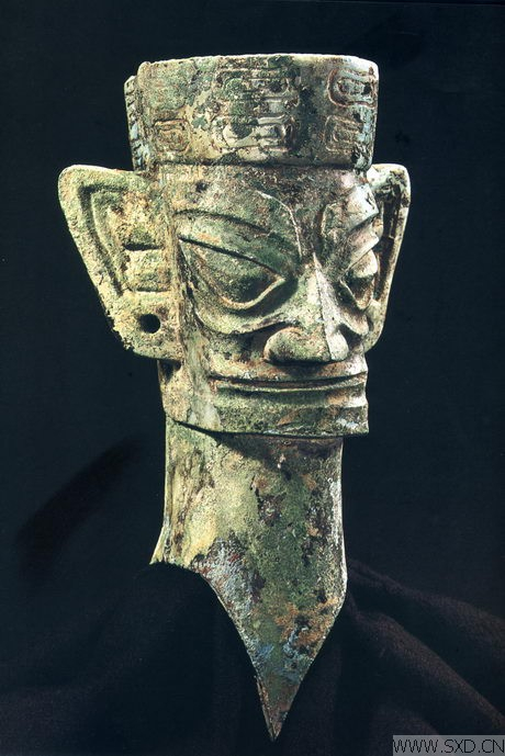 三星堆遗址相当于商代晚期,与中原的商文化同步,也有大型化的倾向。在出土的文物中,除了有一具宽1.32米、高80厘米、重100公斤的青铜大面具外,还有3.96米高的青铜神树、2.6米高的青铜立人像、1.42米长的金杖以及长159厘米、厚1.8厘米、宽22厘米的玉璋。我觉得这正是一种国力强盛的体现。