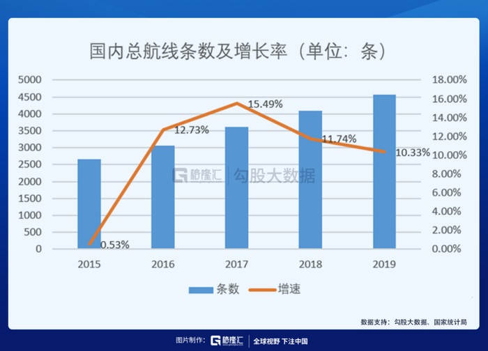 携程作为线上旅行的老大哥,OTA行业的成长一直映射着它的兴起。而对于OTA行业的未来景气程度,可以从供给与需求两个维度把控。首先是从供给侧:得益于我国的航空基建与互联网覆盖逐步成熟完善,提供基本条件,自2015年以来,国内航空高速发展,截至2019年底,我国国内航线已超过4500条,复合增速年化保持在10%以上,并预计未来会继续保持扩张,二是住宿选择日益丰富,另外在酒店方面,除了目前中高端/经济型酒店以外的非标住宿也将加速增长。