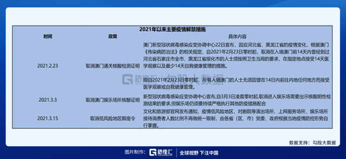 作为疫情控制最有效的国家,我国在2020年7月中旬便放宽了全国跨省旅游的禁令,在进入2021年后,政府更是密集出台了多项疫情解禁政策,覆盖领域同时包括内地与港澳台地区,随着新冠疫苗接种普及率的提升,可以预计后续政府会进一步放开;推测2021H1能放开澳门旅行团与电子签证,2021H2能实现大陆赴香港通关政策;在主要海外市场方面,预计到2021年底能恢复到疫情前的30%-40%。在未来1-2年的时间里,旅游社服都将会是一个持续恢复的行业,公司将受益于行业的贝塔行情。