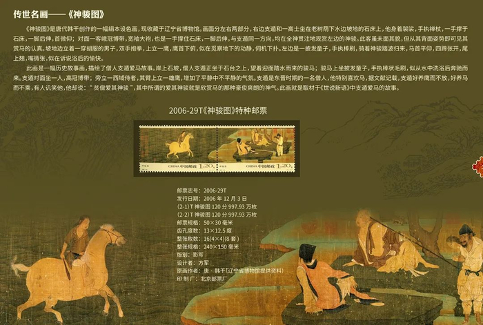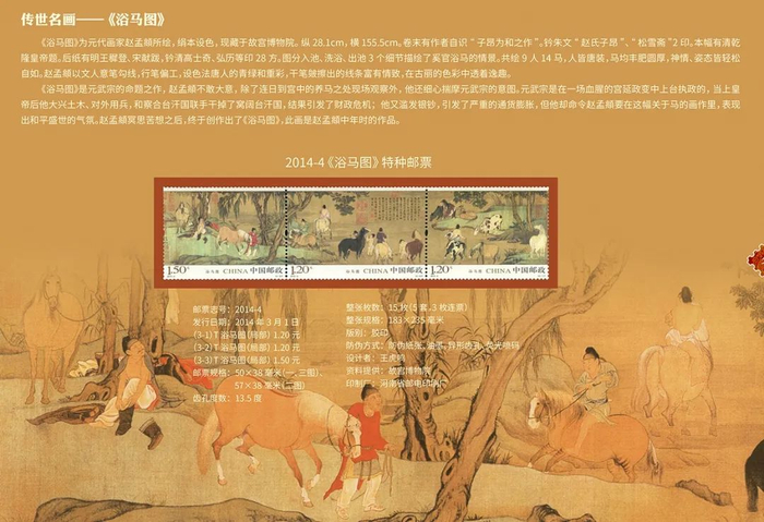 《浴马图》邮票的设计建立在邮政工作者对此画作进行了大量的浓缩和修复工作上,具有极高的艺术价值。