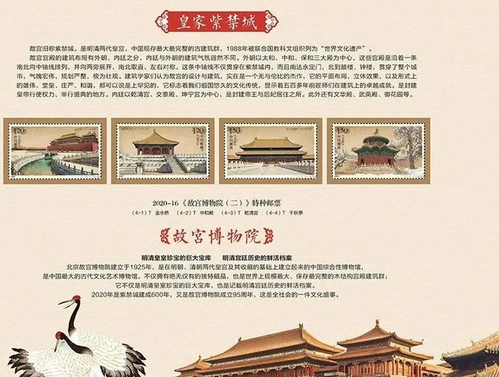 作为故宫的符号,“宫标”在此次邮票上的使用,体现出了邮政和故宫对这套邮票的重视和关注,更具收藏价值,其意义和地位,无疑是之前发行的故宫相关邮票所无法比拟的。