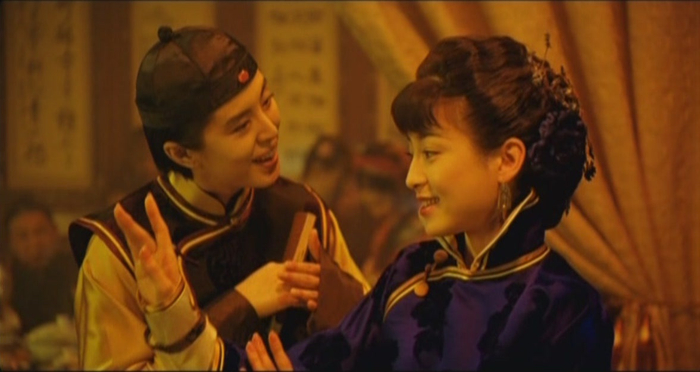站在另一性别阵营里的男性,介入女性构建的情感世界,试图更改情爱的走向。《海上花》里原是美玲旧相识的中村(鹤见辰吾饰演)眼看成功,却被手握同一把匕首的美玲与白兰意外合力刺死,永远退出了与白兰的竞争。《游园惊梦》里的二管家(赵志刚饰演)、邢志刚(吴彦祖饰演)等男性,都是荣兰与翠花确定关系之后的闯入者,他们的战亡或消失,充当了黏合剂,让荣兰与翠花出现裂纹的感情更加坚固。结合杨凡2009年的《泪王子》中临近尾声,出现的那个看似平淡实则惊人心魄的“Les之吻”,以及他在《美少年之恋》《妖街皇后》《桃色》等LGBT题材影片里对于多元性别人群情感取向的态度,女性之间的爱情在他眼里,显然要比其它形式的感情尤其异性恋情,更值得祝福。