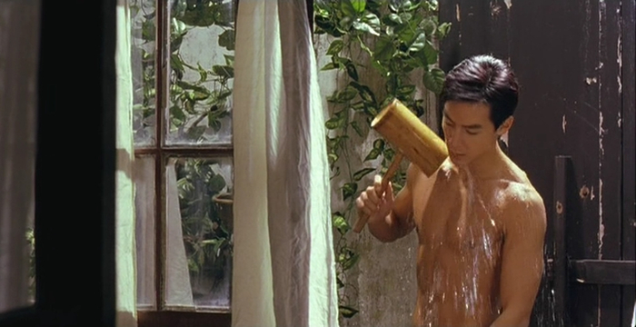 影片里作为闯入者的邢志刚,虽然没能改变荣兰与翠花的感情走向,但在荣兰的忆述里,留在了她的心底。吴彦祖1997年被杨凡发掘主演《美少年之恋》,从而一炮走红进入大众视野以后,通过出演《玻璃之城》《特警新人类》等港片,证明自身的演技实力,在2001年已经不需要再靠色相吸引观众。但大概是为了回报杨凡的赏识之恩,他在《游园惊梦》里仍然奉上了古典范十足的沐浴动图,令荣兰血脉贲张,也让观众心跳加速久久难忘。他后来更因《旺角黑夜》《门徒》等作品,位列华语影坛一线男星。