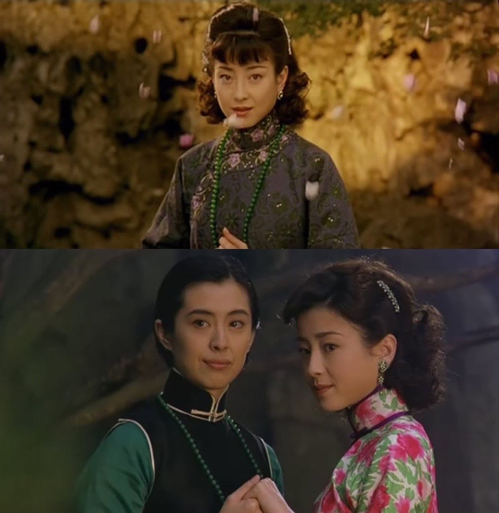 不过随着剧情展开,出身截然不同的两位女性荣兰(王祖贤饰演)与古翠花(宫泽理惠饰演)之间的情感起伏与各自的命运衍变,倒与《海上花》中的姐妹花张美玲(张艾嘉饰演)与白兰(姚炜饰演)构成镜像。只是美玲和白兰的爱恨情仇,由罗大佑作词、谱曲的同名主题曲《海上花》写就,荣兰和翠花的情意浓淡,靠《牡丹亭》“惊梦”“寻梦”两出戏里的几段唱词涂抹。