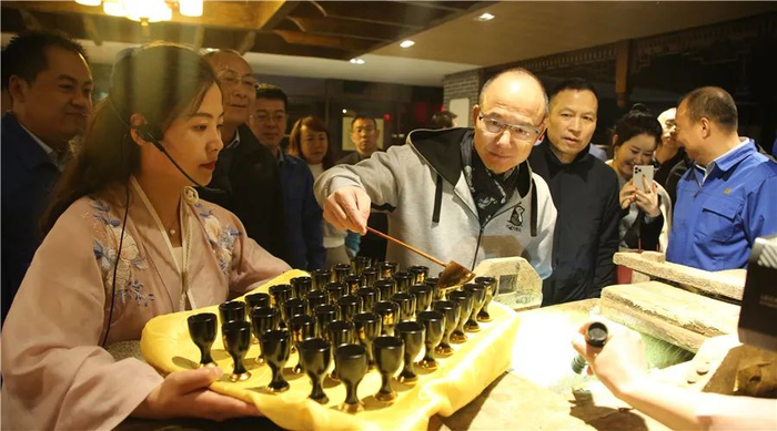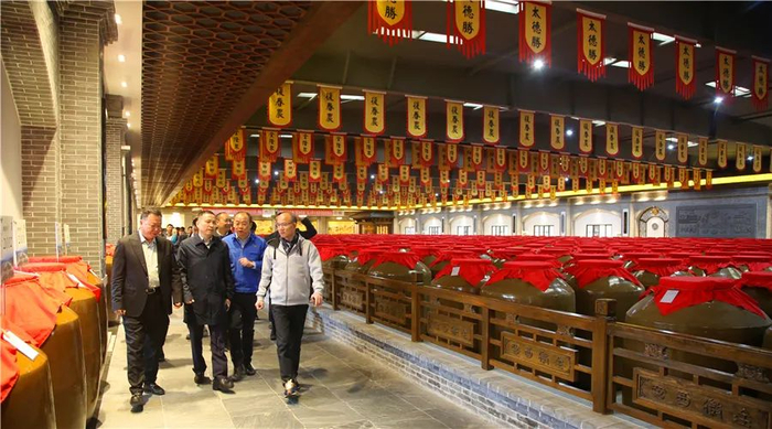 据悉,郭广昌一行先后深入金徽酒酿酒中心、包装中心、养酒馆、员工餐厅、员工公寓等实地考察。在浓香西北第一窖酿酒车间,考察团一行观看了“樱花时节 珍藏春酿”开酿仪式,详细了解了金徽酒的生产工艺,郭广昌现场摘取品鉴并签名封坛珍藏了金徽原酒。