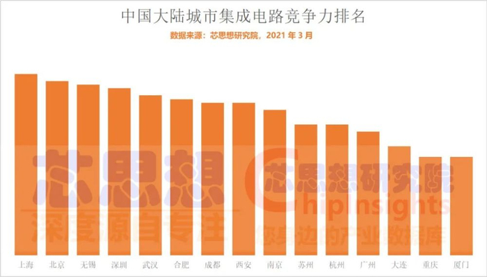 集成电路十五强城市排名:上海北京无锡前三