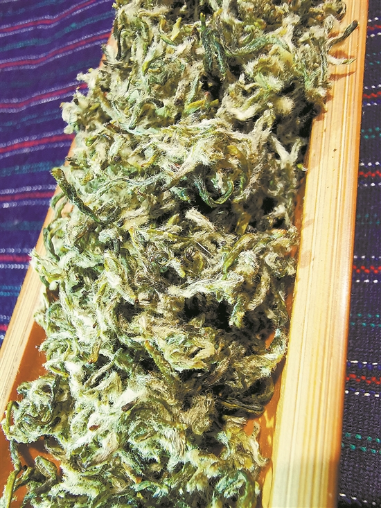 老茶蓬发芽晚,需要较高的积温,颜色近糙米色,茶叶形状大小不均匀,外观没“龙3”匀齐,香味除了浓郁的豆花香以外,还带一股悠悠的花果香,叶底有点儿卷曲。其外形也许没有“龙3”好看,但内质丰富。