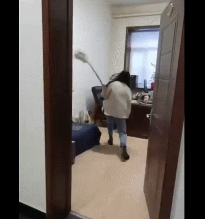 从网传视频可以看到,当日,该女子拿着拖把冲进王某辉的办公室,怒拍其头部,一边打一边痛骂对方三次发送骚扰信息。