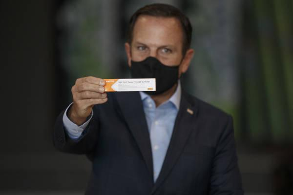巴西圣保罗州州长多利亚展示科兴疫苗,他曾称科兴疫苗“最安全,最有前途” 东方IC图