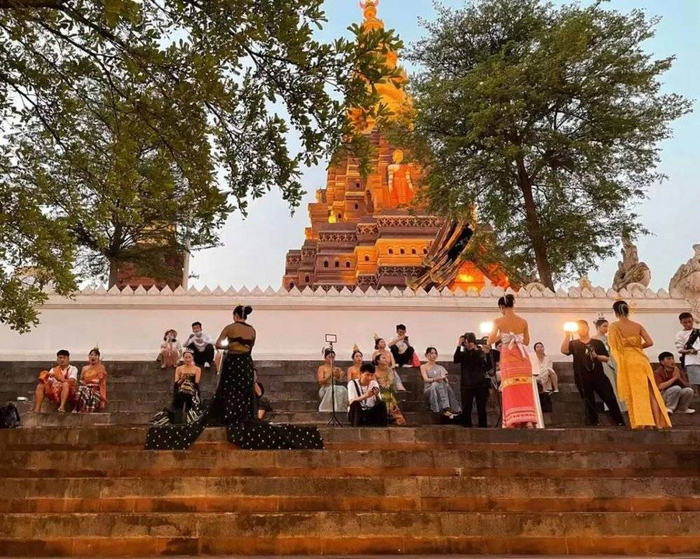 上百个姑娘挤在同一片打卡点上等着凹造型拍照;摄影师身经百战之后,摆的pose比真傣妹还要自然妩媚。