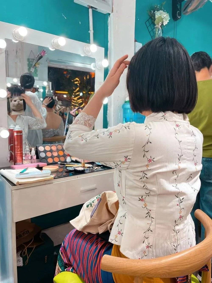 换装后,我来到隔壁的化妆间坐下,摸着自己的短发问,我的发型拍起来应该比较别致吧?