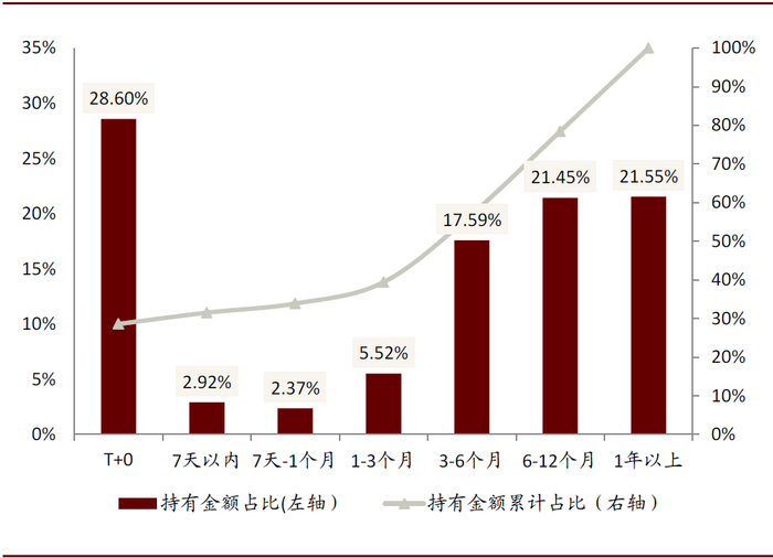 图表:各期限银行理财产品投资者持有金额占比(2020)