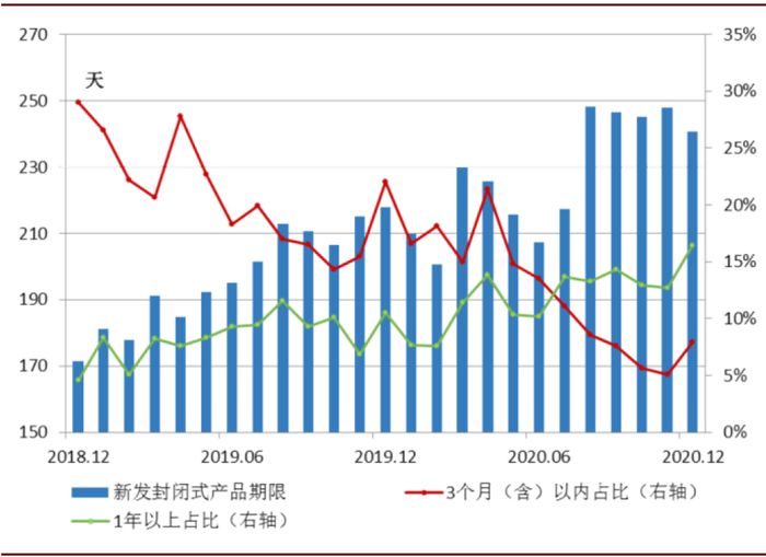 图表: 新发封闭式银行理财产品期限延长(2018-2020)
