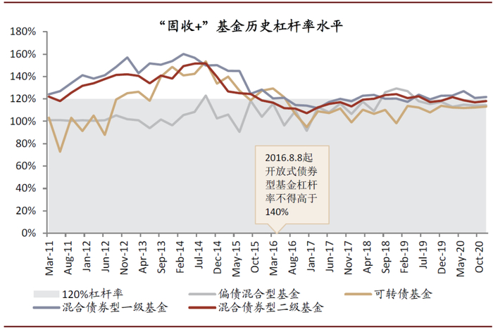 图表: “固收+”基金杠杆水平稳定在120%左右