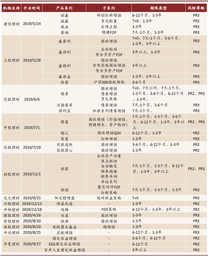 资料来源:中国理财网,中金公司研究部,注:截至2021.03.31,根据产品名称及官网信息梳理,或有不完全统计