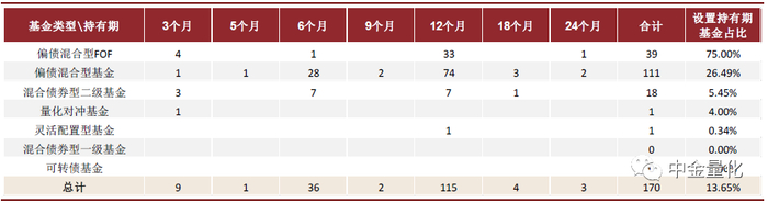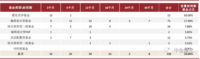 图表: “固收+”基金中量化对冲基金多为定期开放式,12个月以内封闭期占主流