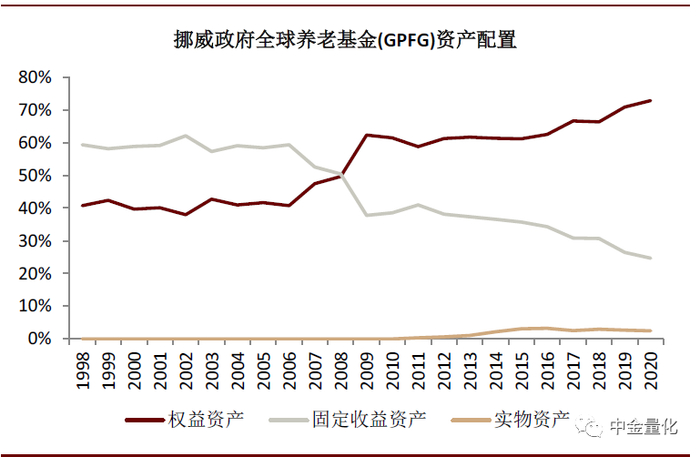 图表:全球最大主权财富基金GPFG固定收益资产配置比例持续降低