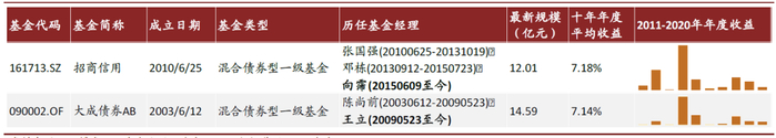 图表:2011-2020年连续十年获得正收益的“固收+”基金