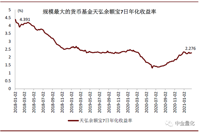 图表:货币基金产品收益率持续下行暂稳定在2%附近