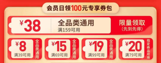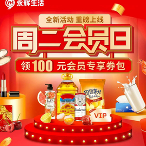 会员日期间,永辉惊喜推出百元券包,内含四张全场满减券及一张指定商品专享券,最高38元全品类通用券。数量有限,先到先得
