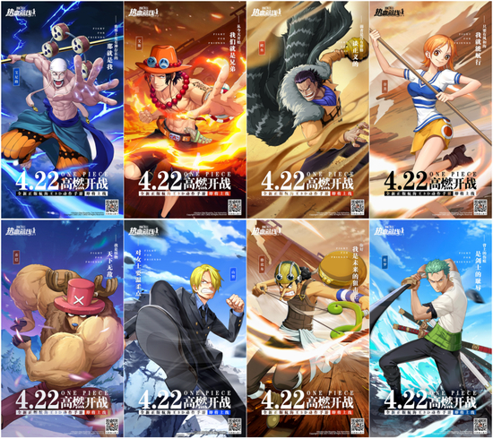 一经发布就刷爆各大平台的《航海王热血航线》手游定档海报,可谓暗藏玄机。定档海报下方“4.22”和“高燃开战”的字样分别明示了游戏上线的日子和游戏的核心特色。每张海报左边还写着关于角色的梦想。如上图中路飞的海报:‘我是要成为航海王的男人’,他的目光坚定,传递着守护心中的ONE PIECE的决心。而这份守护梦想的理念,恰是《航海王》与《航海王热血航线》始终在传递的正能量。