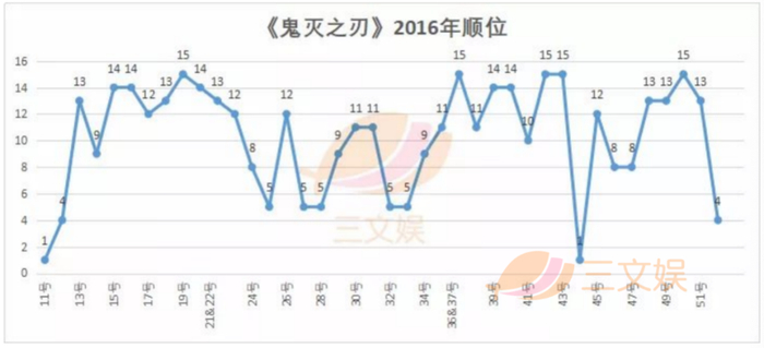 《鬼灭之刃》在初连载时并不被看好,2016年在JUMP的平均顺位仅有10,并不算高,甚至濒临腰斩,直到2017年剧情发展到高潮才开始大展身手。2018年6月宣布TV动画化,2019年4月6号播出,此时《鬼灭之刃》的漫画销量累计450万,只能说中规中矩。然而飞碟社ufotable的高水平制作让《鬼灭之刃》动画凭借强烈的视听冲击引爆出圈。
