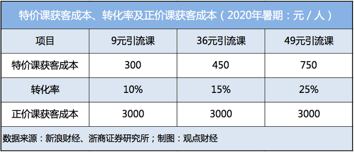此外,K12大班的获客成本也非常高,2020年暑期,9元引流课的获客成本达到了300元,转化率仅有10%。