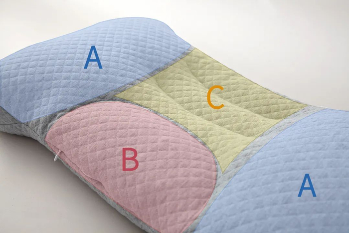 团队根据人体工学设计,对应我们的颈、肩、脸颊,将枕头分为了A\B\C三个区域。