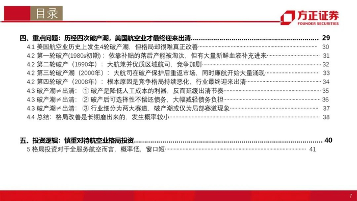 2、破产并不等于出清,美国航空业七十年代以来经历四轮破产潮,才最终迎来行业出清,出清极其困难。其主要原因有二: