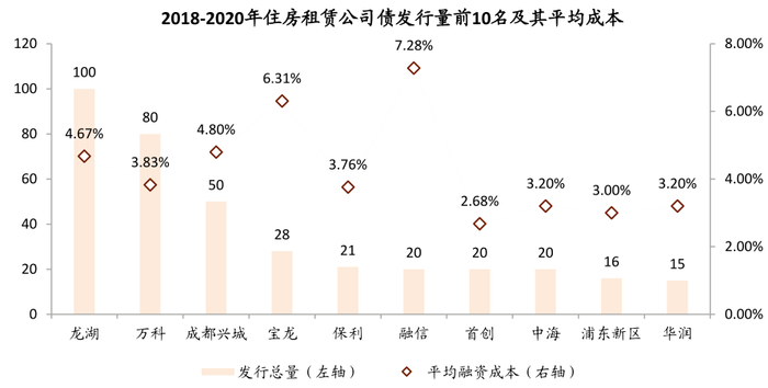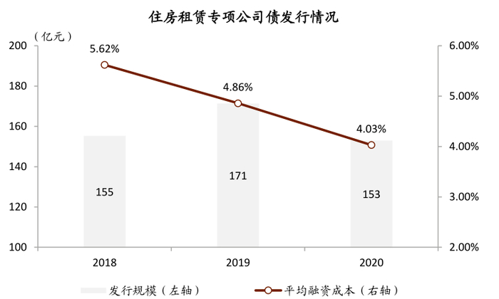 注:1)住房租赁专项公司债相关支持政策于2016年开始出台,第一支专项债券于2018年开始发售;2)右图为2018-2020年期间,公司发布全部专项债券的平均利率