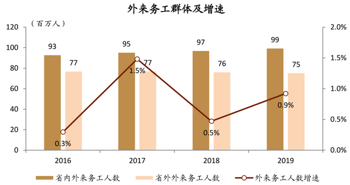 图表: 2019年中国外来务工群体总计1.74亿人,约九成依赖租赁住房解决居住问题