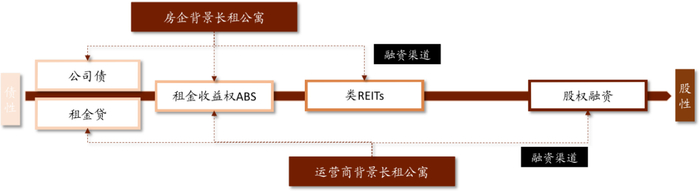 图表: 目前长租公寓企业主要依托ABS或类REITs产品来服务重资产退出