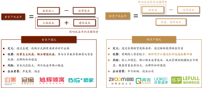 图表: 轻、重资产模式低收益率“痛点”不同