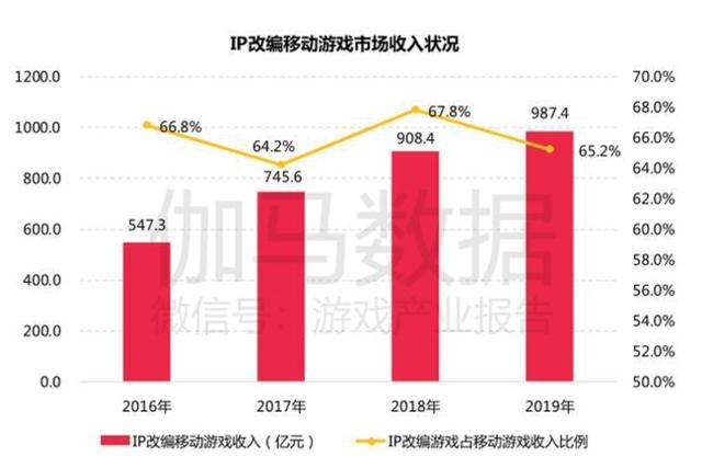 记者注意到,近年来改编国漫IP这一做法正成为游戏公司获取更多高质量玩家的重要途径。伽马数据《2019-2020移动游戏IP潜在价值评估报告》显示,IP改编产品仍是高效获取用户的方式之一,2019年流水TOP100移动游戏产品中,七成产品拥有IP,流水占比达到65%。