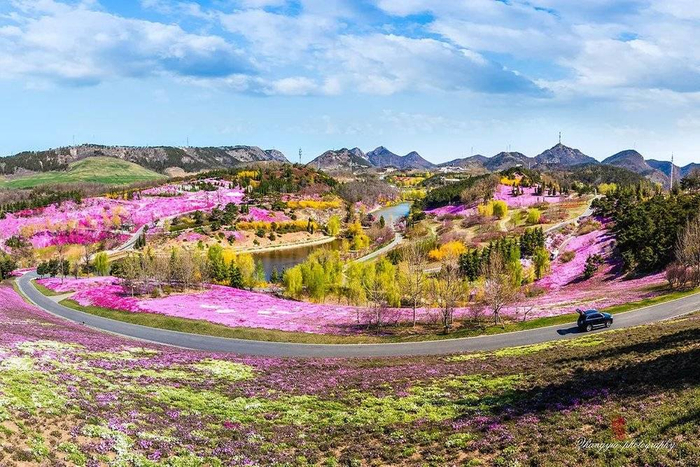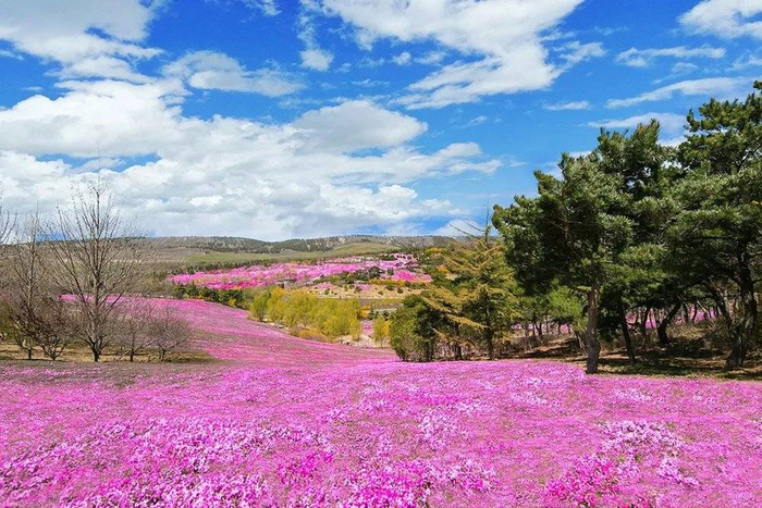 沈阳、铁岭、丹东和盘锦的人也来了,五一高峰期,每天有四万多人入园,还有成百上千的小汽车堵在沈海高速,动弹不得。唐忠磊一个朋友十点出门,下午三点还堵在另一个山头,远远地拍了一张粉色的芝樱园发朋友圈:“嗯,真好看。”