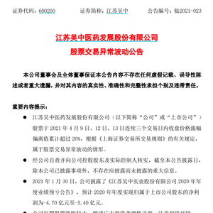 连续收获两个涨停板的江苏吴中在4月13日晚发布股票交易异动公告,公司称关注到在部分股票交流平台,有投资者将公司称为“核污染防治概念股”、“防辐射概念股”,原因或是有公开材料显示,一款名为“乃捷尔牌清辐宁胶囊”的药品由江苏吴中大自然生物工程有限责任公司研发生产,对辐射危害有辅助保护作用。