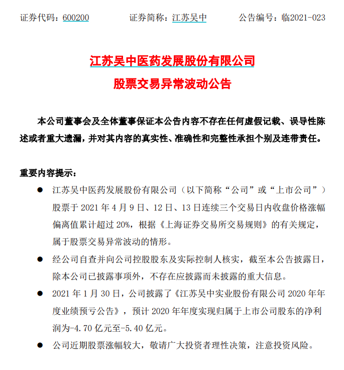 连续涨停后江苏吴中突然澄清:游资上演胜利大逃亡 8万股东抓狂