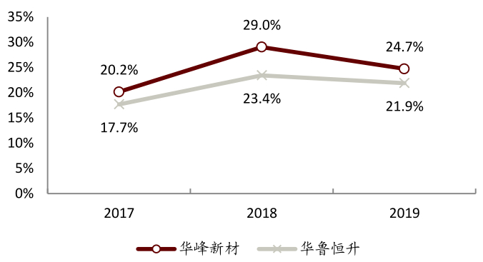 图表: 华峰新材和华鲁恒升己二酸业务的毛利率对比