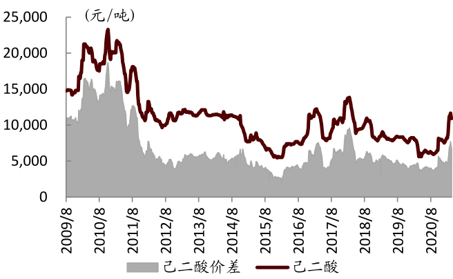 图表: 中国己二酸价格价差