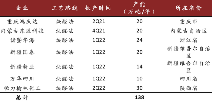 资料来源:卓创资讯,中金公司研究部 *注:标红代表当年有新增;截止2021年3月底