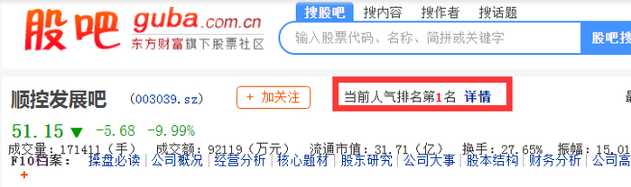 顺控发展复牌,股吧网友一片沸腾,股吧当前人气排名第1名。