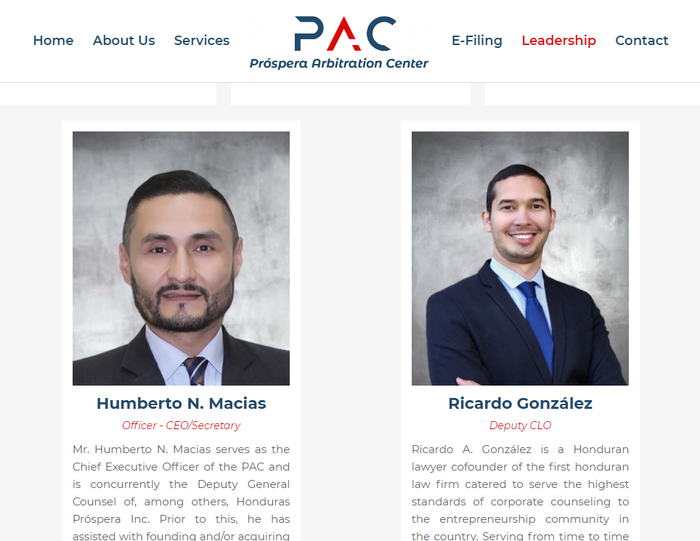 Próspera 法庭的法官目前仍然空着;仲裁庭已经有十来名仲裁官,其中三名资深仲裁官均来自美国;但吊诡的是,这个仲裁庭又是按照公司方式治理的,它的 CEO 恰好又是前述 LLC 的法律顾问,是这个项目投资方的“自己人”。
