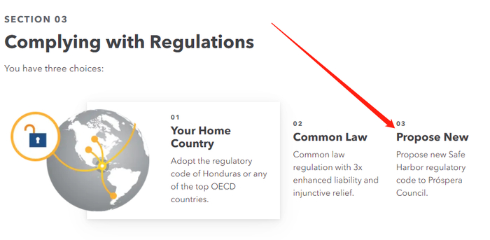 关于一些特定业务的法律合规流程,更爽的地方来了:Próspera 甚至允许入驻公司直接向管理当局提交申请,在这个创业城邦自己的法规框架下创造一套全新的,有利于自己的安全港法规。(大意就是说,设定一个足够宽的范围,然后宣称只要在这个范围内皆不违法,这样的法规就属于安全港法规。)