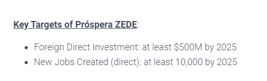 ZEDE 立法通过,吸引了一些主要来自美国的风险投资者的注意。不过由于洪都拉斯国情,政策的实施仍然比较缓慢,不过截至目前,在洪都拉斯好歹已经有两个 ZEDE 项目立项了,其中之一就是 Próspera。