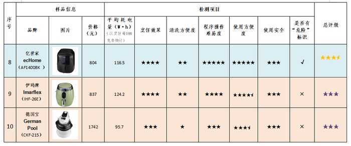 10款空气炸锅测评:Tastec、美的综合表现较好,德国宝烹饪评价一般